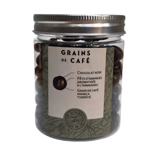Grain de café Arabica enrobé de pâte d’amandes à l’Armagnac et de chocolat noir. Une confiserie intense, croquante et fondante signée François Doucet.