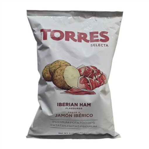 Les Chips au Jambon Ibérique – Torres incarnent l’alliance parfaite entre la tradition espagnole et le plaisir gourmand. Élaborées à partir de pommes de terre soigneusement sélectionnées, finement tranchées et dorées à point, elles sont sublimées par l’arôme profond et raffiné du jambon ibérique de bellota, véritable trésor culinaire d’Espagne.