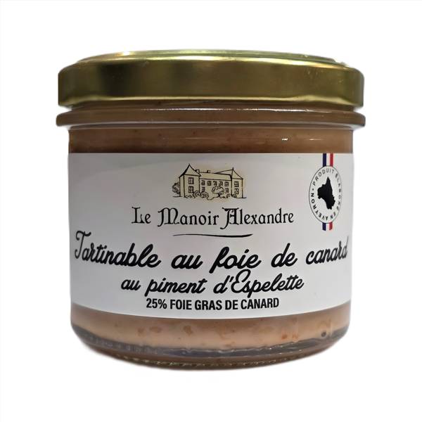 Le Manoir d’Alexandre perpétue une tradition artisanale qui valorise des ingrédients d’exception et un savoir-faire transmis. Chaque recette est soigneusement élaborée afin de révéler des saveurs authentiques et uniques. Ce tartinable au foie de canard illustre parfaitement cette exigence : matières premières de qualité, fabrication rigoureuse et pointe d’originalité avec le piment d’Espelette. Ce dernier, labellisé AOP, est choisi pour sa finesse et ses qualités gustatives. Il apporte une touche subtile qui réveille le palais sans masquer les saveurs.