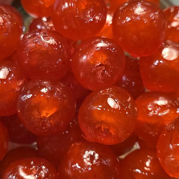 Cerises rouges confites. La délicatesse et la gourmandise des fruits confits d’antan.