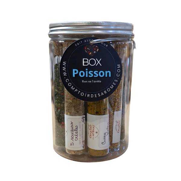 Prenez le large avec notre Box Poissons, un coffret de 8 tubes rechargeables d’épices et mélanges spécialement conçus pour sublimer tous vos plats de la mer. Du combava ultra citronné au satay exotique, en passant par le curry breton aux algues ou les saveurs créoles ensoleillées. Chaque tube vous invite à un voyage culinaire plein d’audace et de fraîcheur. Idéal pour les amateurs de cuisine marine, les aventuriers du goût ou les cadeaux gourmands.