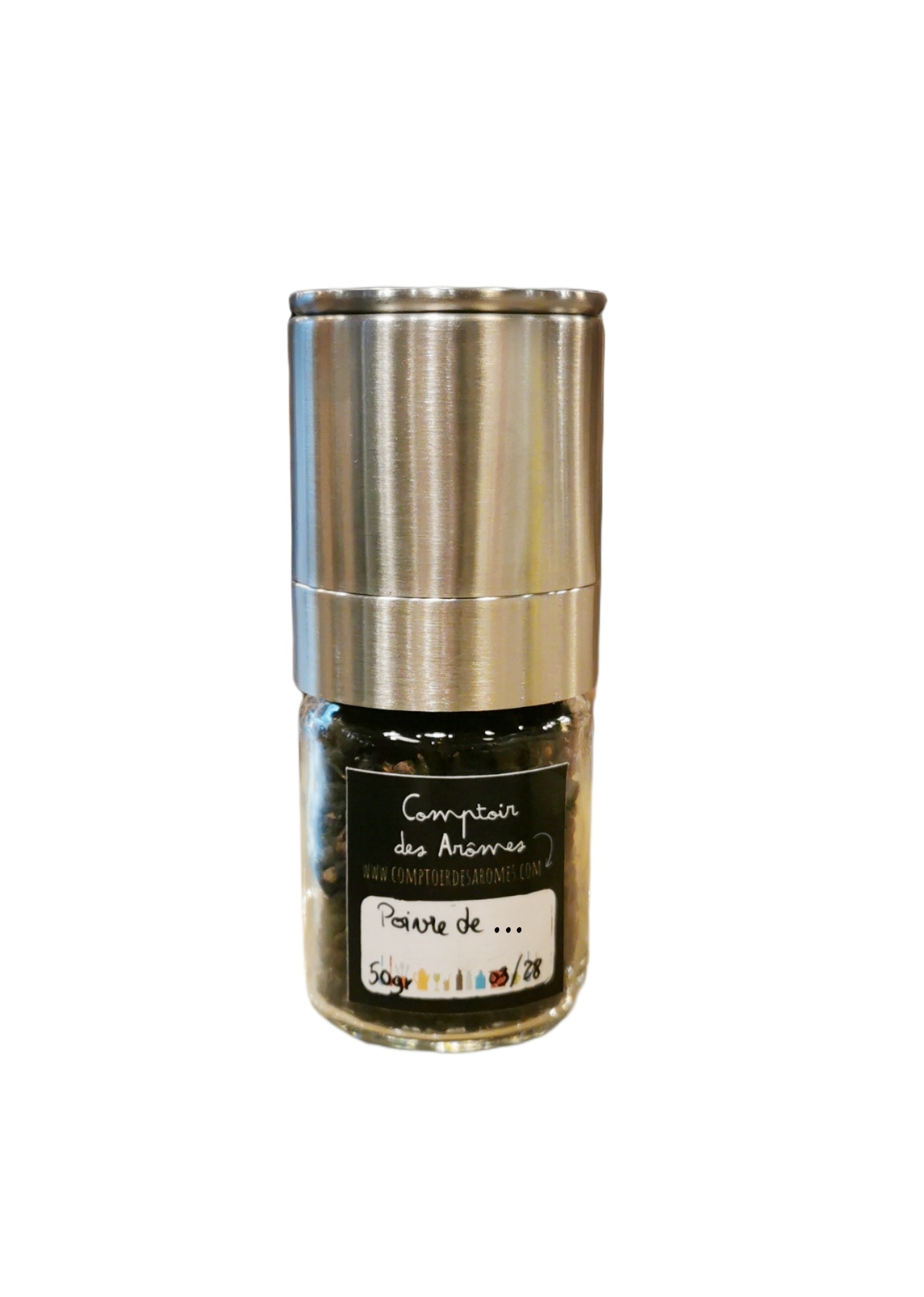 Le mélange 5 baies est composé du poivre noir, vert et blanc ainsi que des baies roses qui apportent de la douceur . Une pointe de piment de Jamaïque apporte du pep’s à l’ensemble. Veillez cependant à avoir un moulin qui supporte de moudre le piment de la Jamaïque qui est assez gros. Au mieux concasser votre poivre grossièrement avant de l’insérer dans votre moulin.