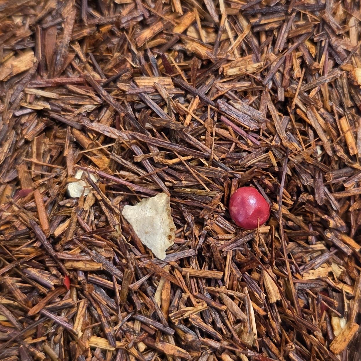 La base de ce mélange est un rooibos de haute qualité, cultivé dans les montagnes de Cederberg, en Afrique du Sud. Sans théine, il se consomme à toute heure de la journée, même en soirée. Son goût rond et naturellement sucré se marie parfaitement avec des saveurs typiques de Noël comme la cannelle, l’orange, la vanille et parfois une pointe de girofle. Ce mariage équilibré fait de chaque tasse une explosion de saveurs qui éveille vos sens.
