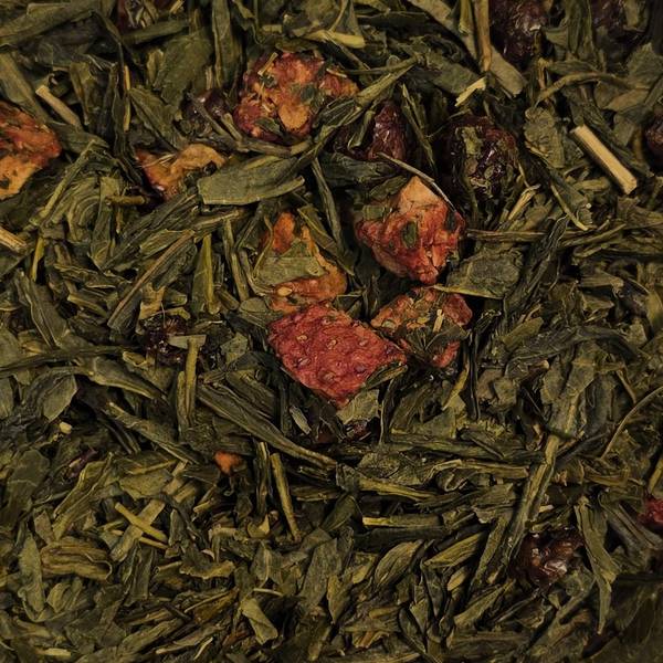 Parfum de sous bois et envie de promenade avec ce délicieux thé vert Sencha de Chine aux fruits rouges et noirs, cerise, groseille, framboise, fraise des bois, myrtille et cassis. Les bienfaits du thé vert et le plaisir des fruits. 1,2,3… je m’en vais au bois. Un petit air de grandes vacances.