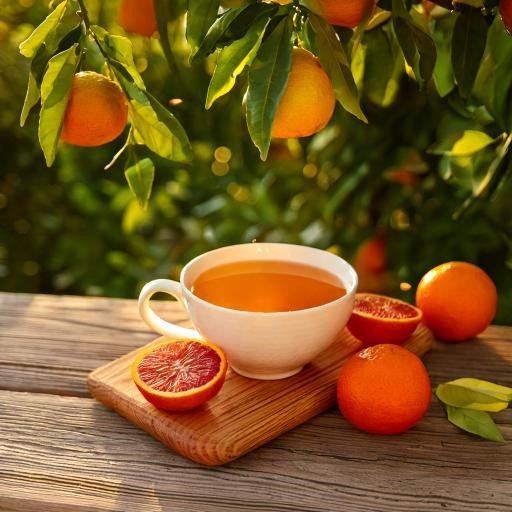 Thé vert Soleil vert… Orange sanguine et écorces d’oranges. Le soleil à tous les étages. Vivifiant mélange de Sencha et des huiles essentielles d’orange, le tout agrémenté d’écorces d’oranges.