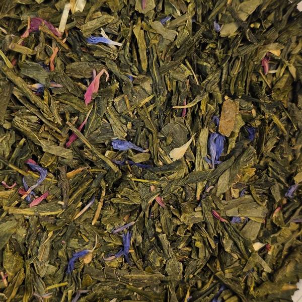 Plaisir des sens pour ce mélange de Sencha, avec une note dominante de fruit de la passion et des saveurs complémentaires de pêche de vigne et fraise des bois. Délicatesse relevée par de petits morceaux d’ananas et pétales de fleurs. Le Thé vert des jardins orientaux. Envolez vous ailleurs…